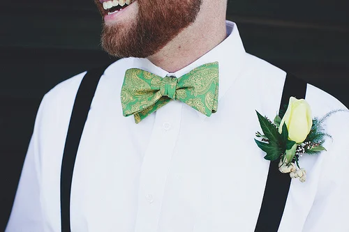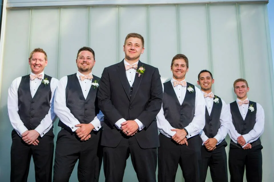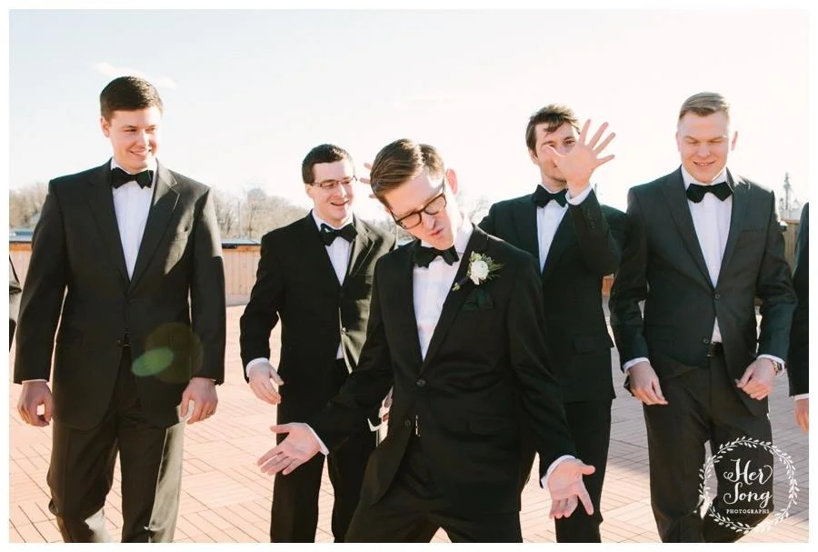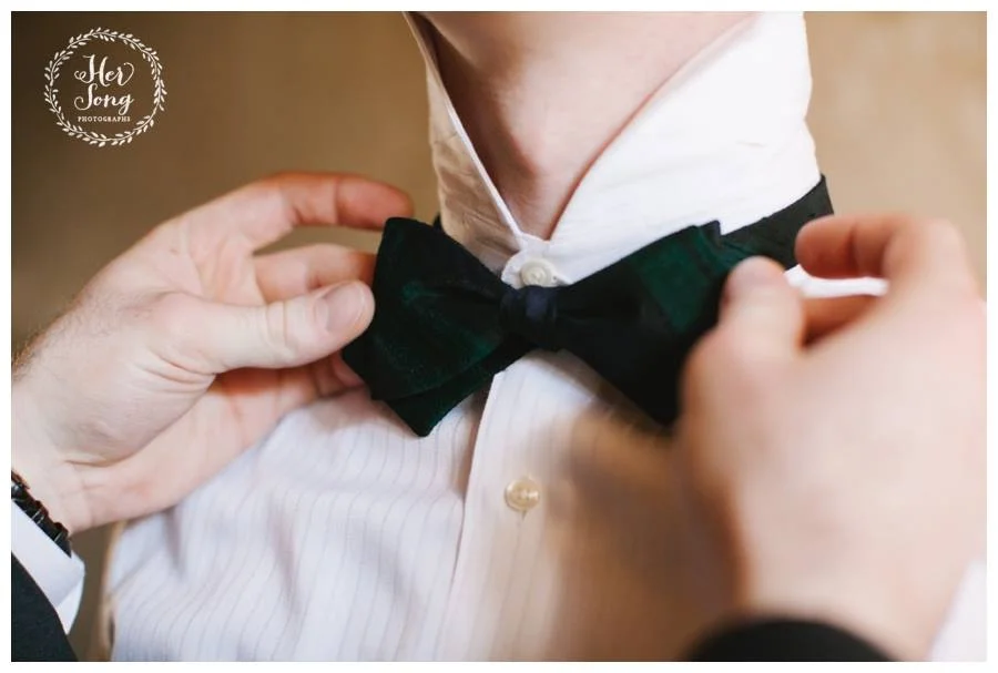 Each groomsman had a personalized monogram bow tie in this dreamy winter wedding.
